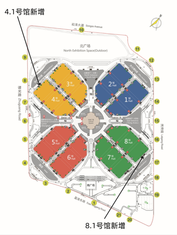 15.新增4.1H馆12、13号门安检验证口作为平峰期人员出入口,推动出入口达27处,缩短进馆排队时间。