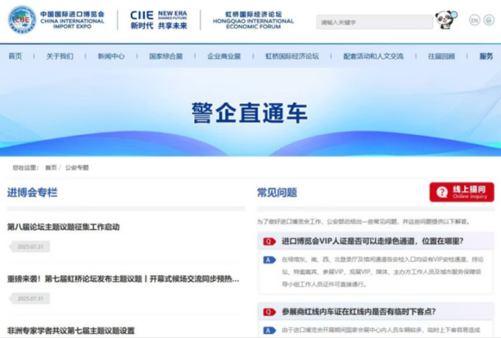 上海公安在中国国际进口博览会门户网站主页醒目位置设置“警企直通车”专栏飘窗。上海市公安局供图